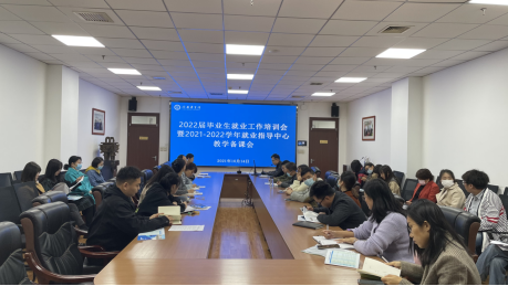 为有效提高我校就业工作人员就业指导水平,进一步增强大学生职业生涯发展规划与就业指导课程教学实效,更好地指导毕业生择业就业。10月14日下午,学校就业指导中心在图书馆一楼会议室组织召开2022届毕业生就业工作培训会暨2021-2022学年就业指导中心教学备课会。会议由就业指导中心主任穆可主持,各院部就业专干、毕业班辅导员、带课教师及就业指导中心全员参加了会议。