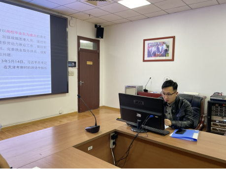 就业指导中心钱雯向与会人员讲解了我校校园招聘会及宣讲会的举办流程、注意事项及疫情防控有关规定,以及我校就业信息发布的主要渠道及发布方式,为后续校院二级组织开展多形式、多渠道的招聘活动、搭建好毕业生与用人单位间桥梁作用给予了积极的指导。
