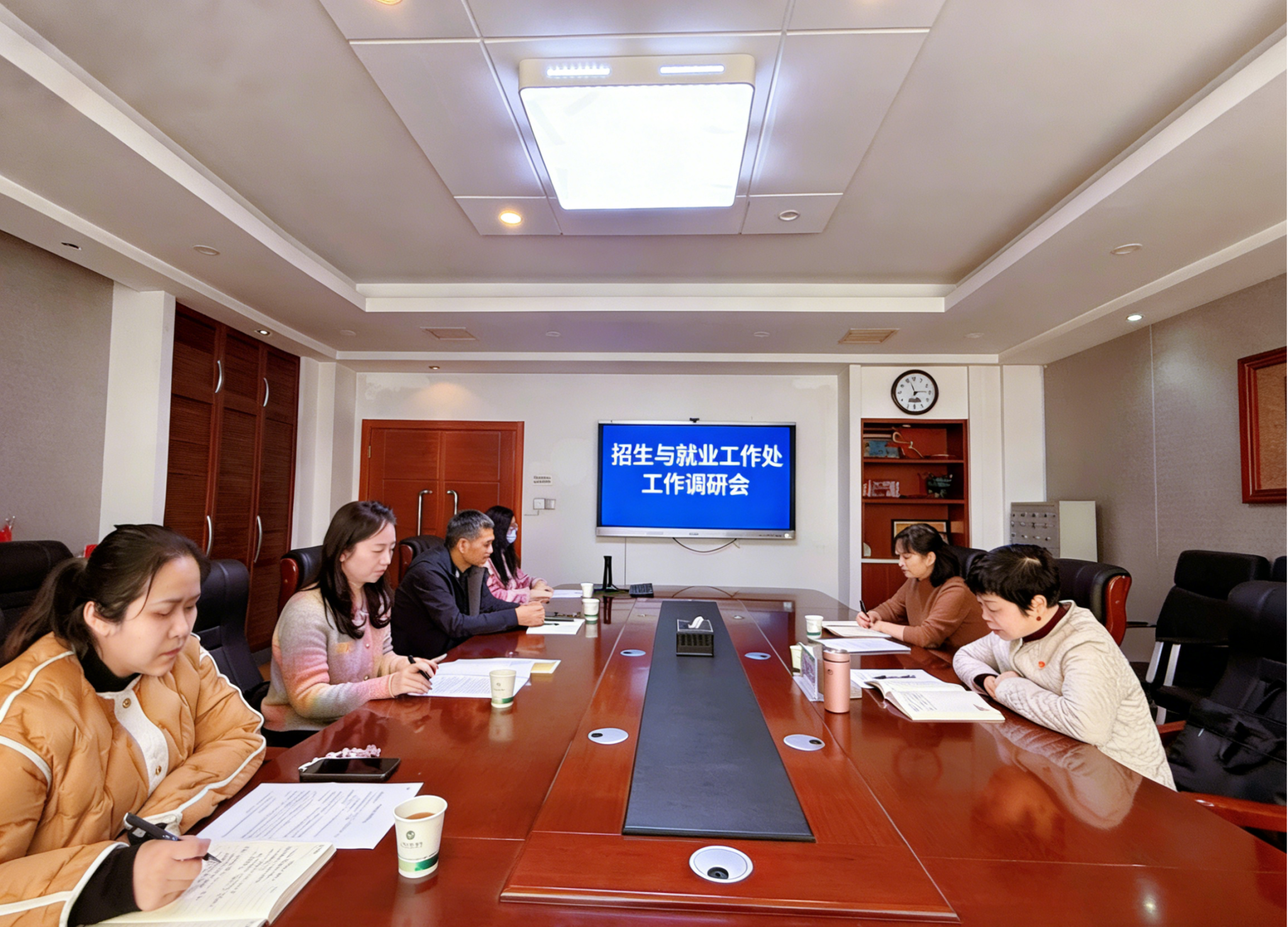 会上,郭婷从整体工作推进、统筹部署及阶段性成效等方面,全面汇报了招就处工作开展情况。随后,招生办、就业指导中心、校友办负责人依次作专项汇报,分别围绕年度招生宣传策划、生源质量提升举措、毕业生就业精准服务、就业市场开拓、校友联络对接及校友资源整合建设等核心任务,详细阐述了当前工作进展、存在的难点问题,并汇报了下一步工作计划。