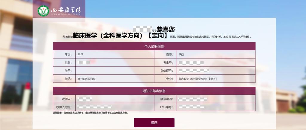 我校于7月13日下午已将西安医学院《订单定向医学生免费教育协议书》和《免费本科医学定向生协议签订的说明》以邮政速递(EMS)的方式邮寄给考生。请考生及时关注,并按要求办理相关手续。考生可登录西安医学院招生信息网(http://zs.xiyi.edu.cn/),在“录取查询”子页面查询EMS邮政速递单号。