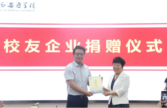 李雪萍在致辞中回顾了建校73年以来,一代代西医人风雨兼程、薪火相传书写的艰苦创业、自强不息办学史。她指出,西安医臻生物医药科技有限公司、陕西云能仪器设备有限公司在学校建校73周年之际的热心捐赠意义重大,对校友许鹏、娄莎对母校的热心支持表示感谢。她强调,校友是母校的名片,是母校办学质量的一面镜子,而母校对校友的凝聚力构成了学校综合实力的重要标志。相信在广大校友的关心和帮助下,西安医学院各项事业定会蓬勃发展,迈上一个崭新的台阶,为经济社会和医药卫生事业发展作出新的更大贡献。希望广大校友和母校同心同德、同向同行,为母校发展出谋划策、奉献力量,值此73周年校庆之际,真诚邀请广大校友回家看看,重温往日的青春时光,再叙师生和同窗间的真挚情谊。